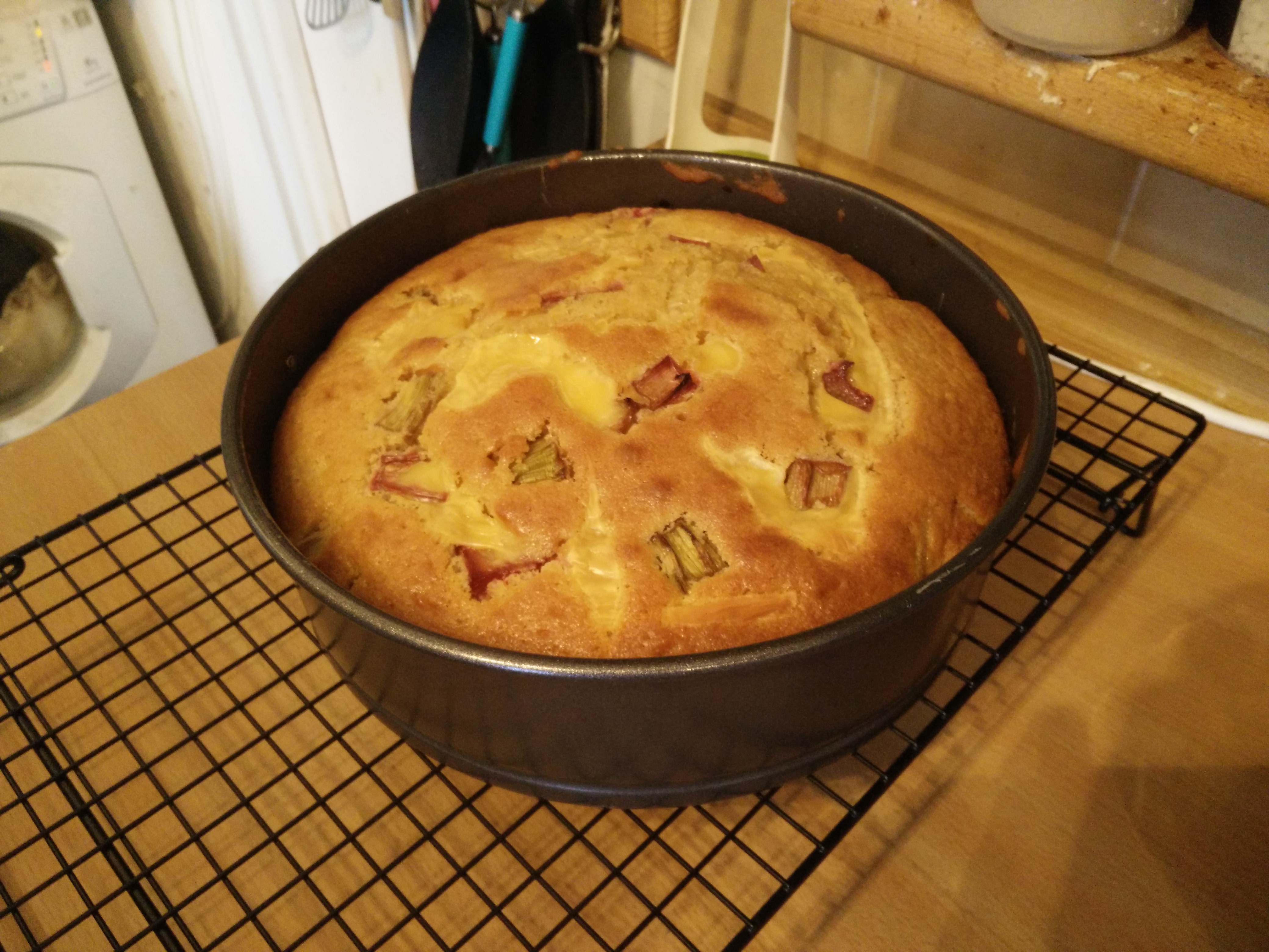 Garden rhubarb is going well, which is a great excuse to make this rhubarb and custard cake!