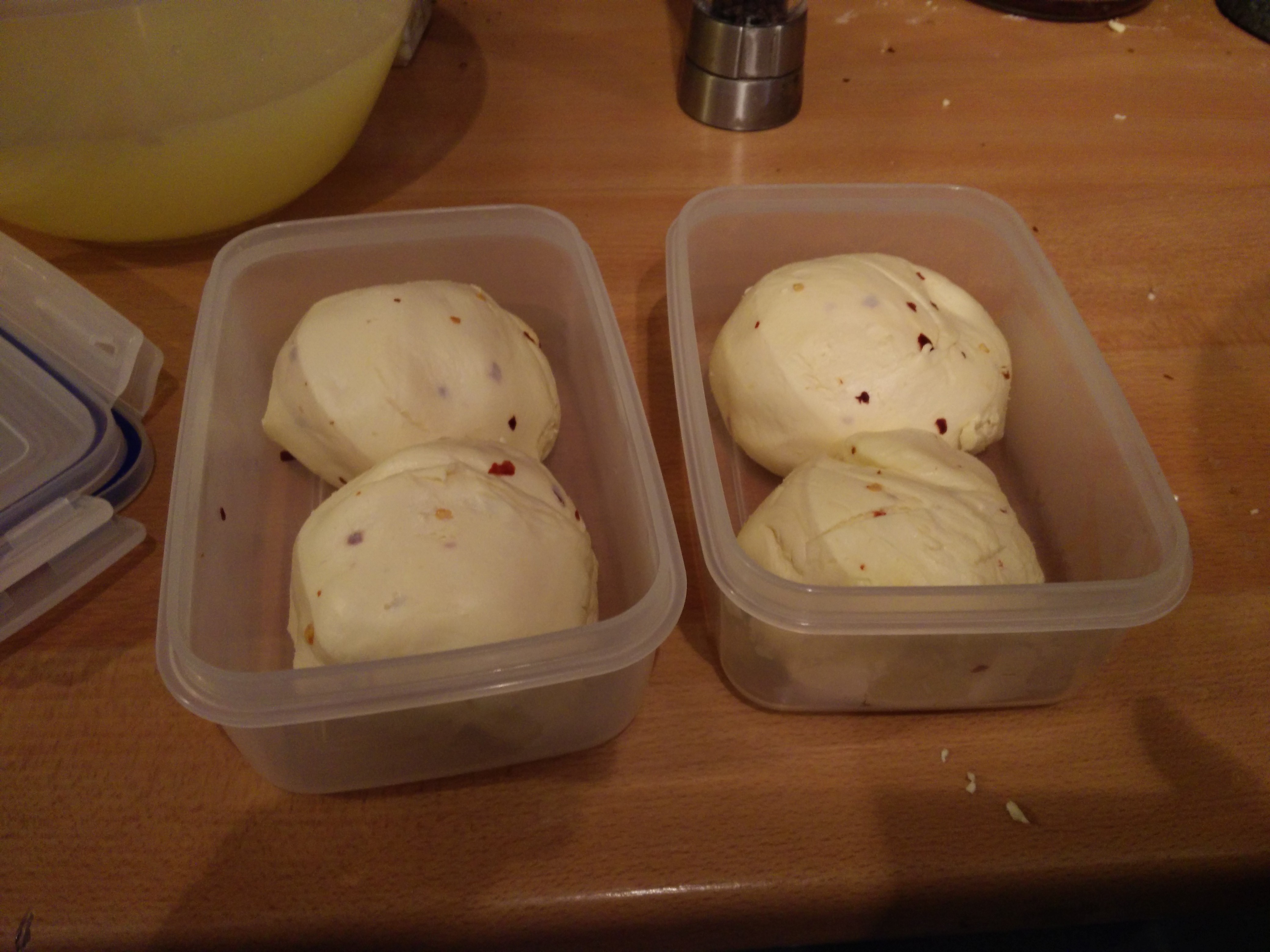 Then apparently you can finish by kneading in basil or chilli flakes. Guess what – we chose chilli flakes!